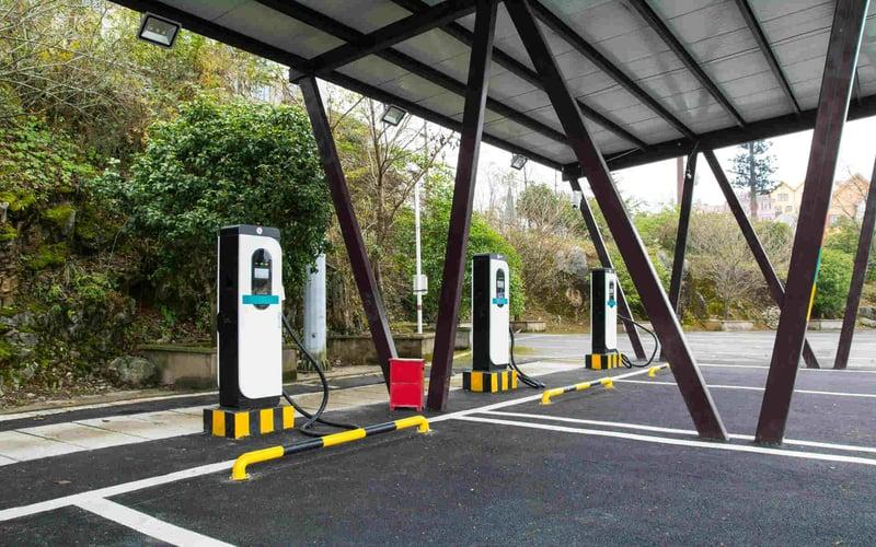 Multi-bay EV charging station under canopy